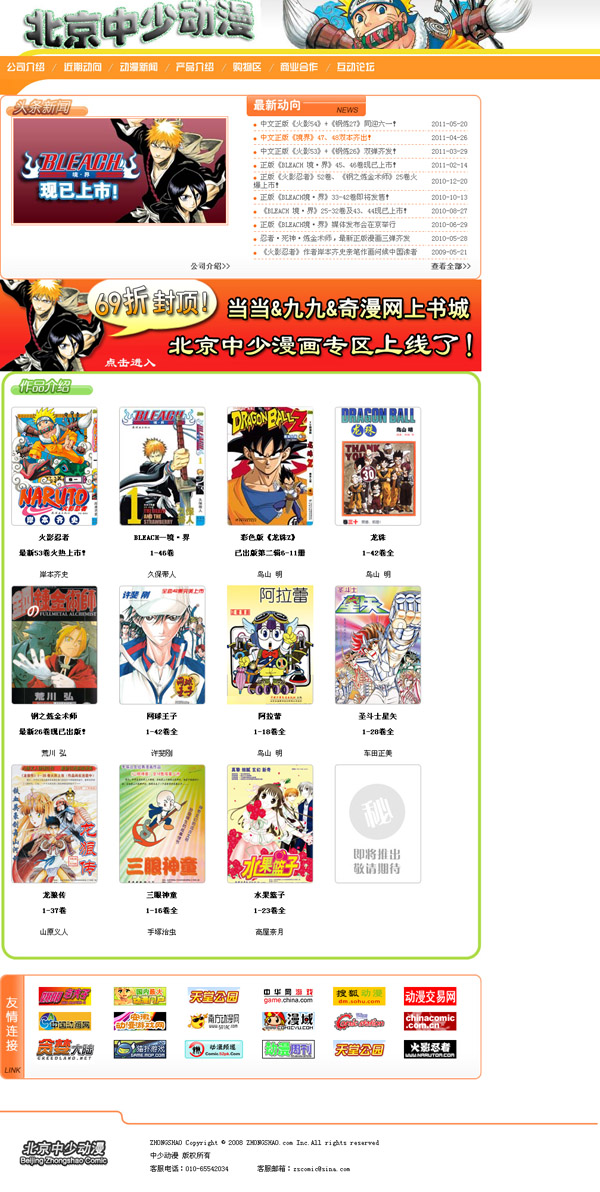 公司自創(chuàng)建以來,積極與國表里各大出書社相助。如今正在運營的書刊有數(shù)百種,此中《火影》(首印10萬套,上市月余即加?。?、《龍珠》(上市三年銷量近千萬冊)、《鋼之煉金術師》、《網(wǎng)球王子》、《圣斗士》(已經(jīng)再版多次)、《水果籃子》、《阿拉蕾》、《三眼神童》、《龍狼傳》以及海內(nèi)最高程度的原創(chuàng)作品“四臺甫著”等多部漫繪圖書深受讀者接待,市場回聲極其火爆。