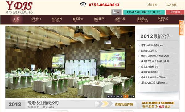 深圳市緣定今生婚慶禮儀策劃有限公司是一家具有時(shí)尚色彩的專業(yè)婚禮統(tǒng)籌機(jī)構(gòu)。擁有雄厚的婚禮企劃能力、優(yōu)良的服務(wù)體系、資深的策劃專業(yè)人士和獨(dú)特創(chuàng)新的婚禮創(chuàng)意制作。形成了自己獨(dú)特的策劃風(fēng)格,具有承辦各類中、西式和個(gè)性化的流行時(shí)尚婚禮的豐富經(jīng)驗(yàn),可以向新人提供全方位、個(gè)性化的專業(yè)服務(wù)。及先進(jìn)的管理模式使我們?cè)谕袠I(yè)的競(jìng)爭中脫穎而出,獨(dú)樹一幟。
