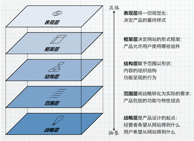 根據(jù)Jesse Garrett的產(chǎn)品設(shè)計層次模型,重新梳理產(chǎn)品定位,探索在新的視覺形式框架下形成清晰的可供性感知。