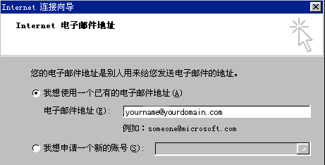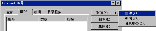 單擊"添加"按鈕,從彈出的菜單中選擇"郵件"選項將彈出Internet連接向?qū)В?