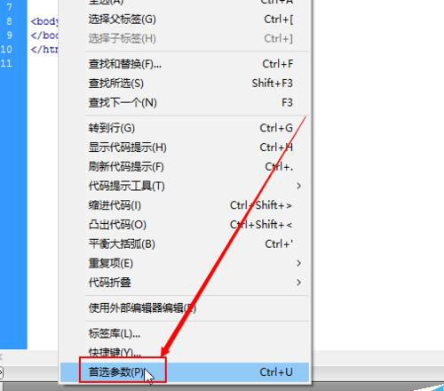 然后再彈出的下拉菜單中選擇“首選參數(shù)”這個菜單選項。